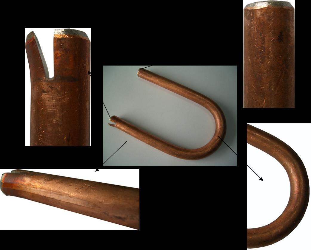 1)钢铜结合力差,可从表面切割将铜层与钢棒分开;
