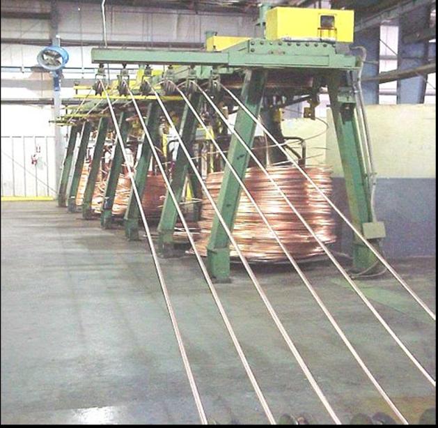 包铜钢工艺: 将钢材插入铜管内,利用直拉机拉丝模的束紧力将铜管束紧在钢材外表面.也称冷轧包覆法,即用机械力将铜层包覆在钢材上.
