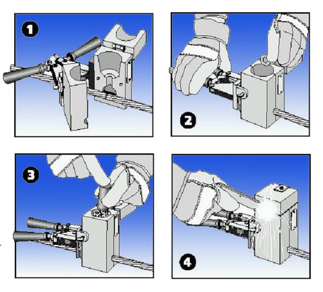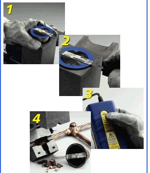 1.置入焊药2.夹上夹钳3.按键、轻松完成放热焊接4.整理模具