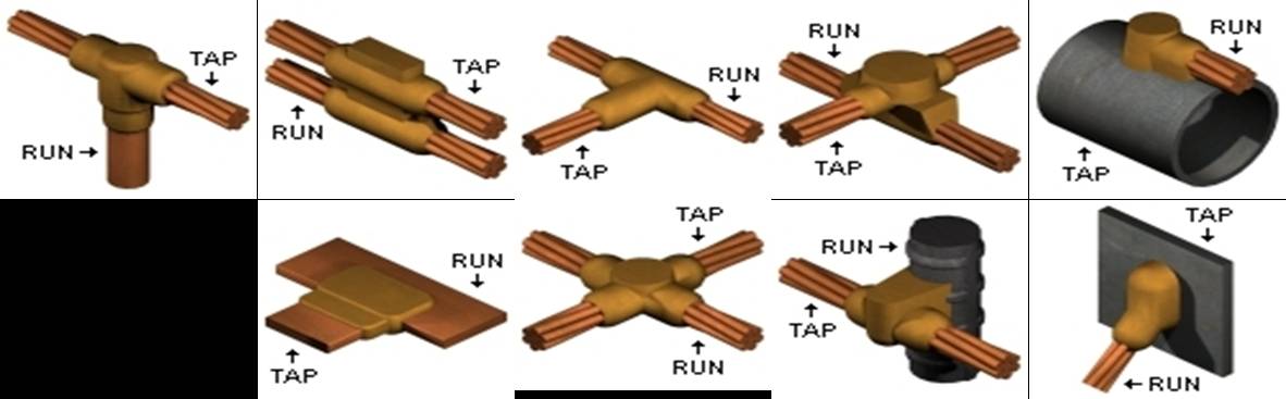 各种接地体用放热焊接连接的图示